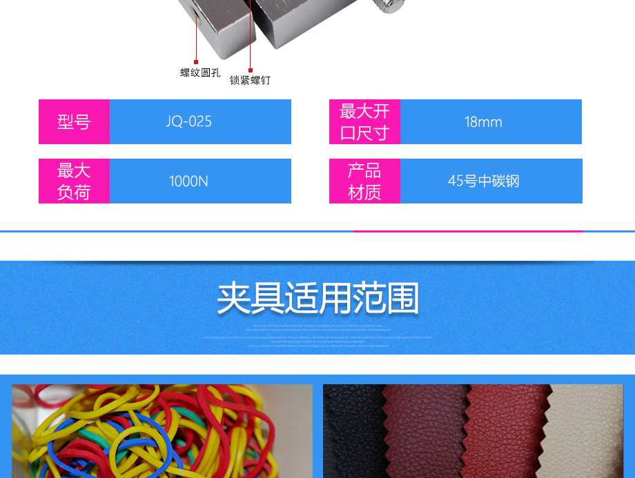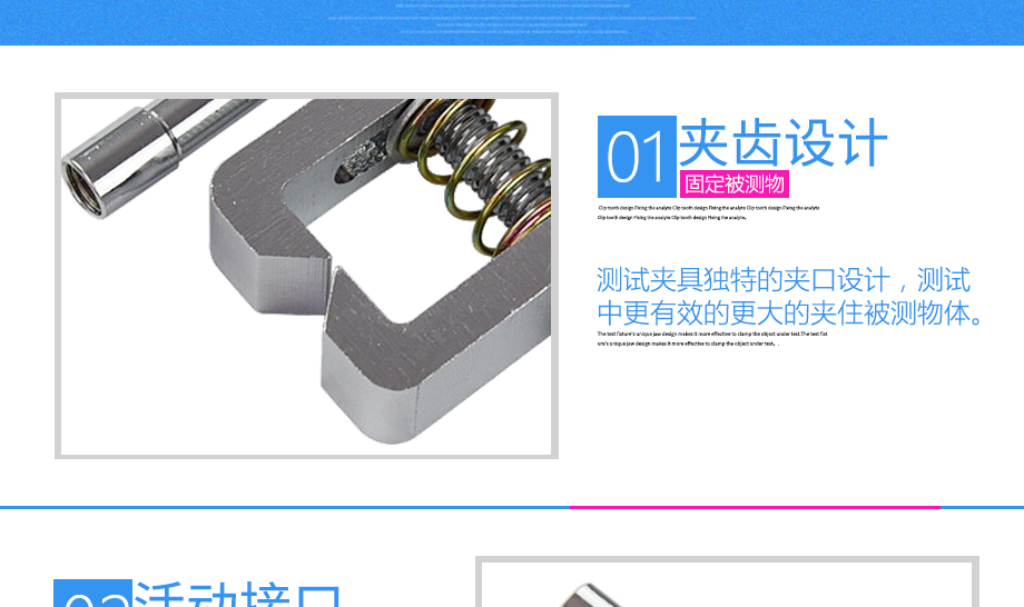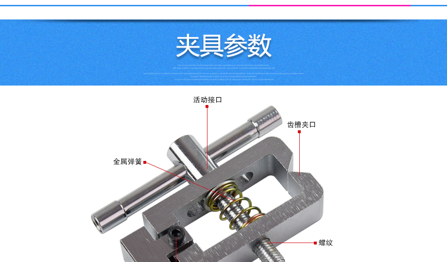 產(chǎn)品型號(hào):JQ-025 品牌:劍 喬 用途:尖口端子夾具適用范圍:橡膠、各種線纜、紙、各種電器元件、塑料薄膜等材料的拉力,破壞力測(cè)試。